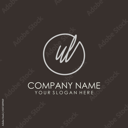 UL initials signature logo. Handwritten vector logo template connected to a circle. Hand drawn Calligraphy lettering Vector illustration.