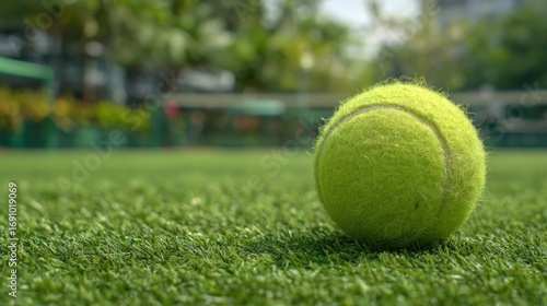 ultra puality image Clear Pixel Picture of Tennis Ball on Grass Court, Ready for Play.