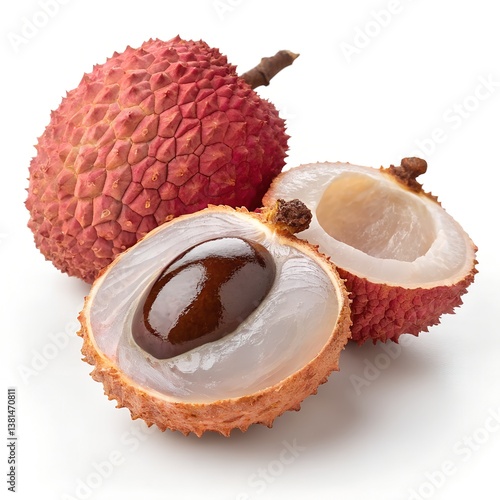 fruit, food, isolated, fresh, tropical, white, sweet, durian, lychee, exotic, healthy, ripe, green, nature, cut, pineapple, shell, delicious, seed, organic, nourishment, diet, half