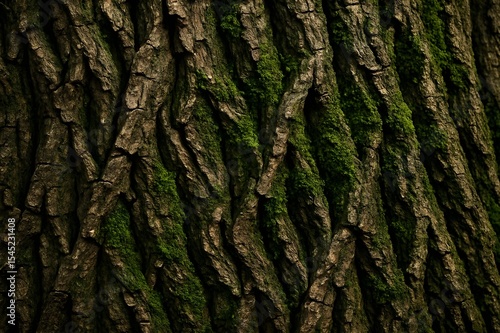 Ultra-Detailed Macro of Aged Oak Bark Texture with Cracks and Natural Grain, Captured in Natural Light