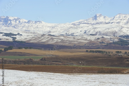 snow, farmland, winter, ranch, agriculture, farming, cold, foothill, south africa, field, pasture, river, pastoral, rural, vale, landscape, road, route