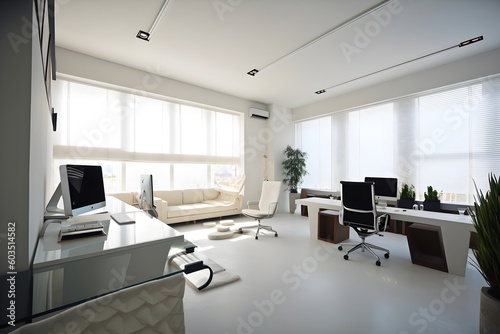Un bureau moderne Design d'intérieur Vue de l'ensemble du bureau, generative ai