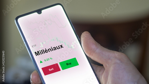 Un investisseur analyse un fonds etf milléniaux sur un graphique. Un téléphone affiche le cours de l'ETF Milléniaux
