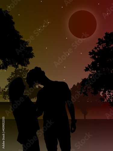 couple, love, silhouette, romance, woman, people, evening, romantic, heaven, sunset, kiss, family, moon, beach, valentine, happy, children, young, lover, nature, together, kiss, ticker, sun, baby