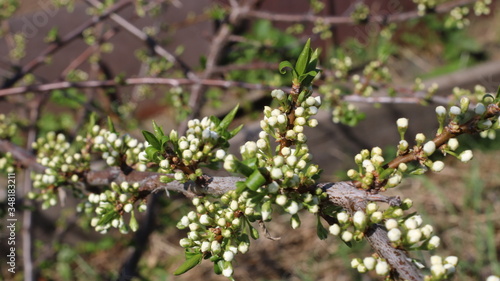unblown flower buds on apple tree branches in a spring garden