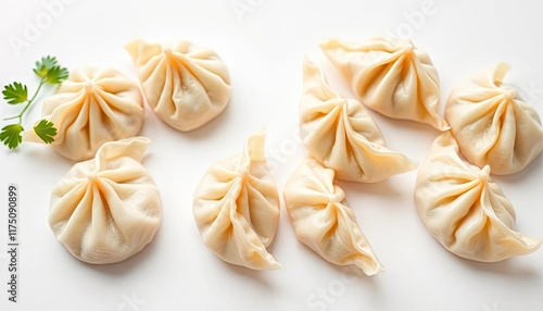 Uncooked dumplings on white background, ready to cook, for Asian cuisine