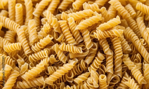 Uncooked rotini pasta background