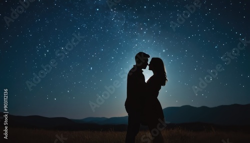 romantic, couple, star, night sky, silhouette, mountain, love, night scene, outdoors, nature, serenity, peaceful, togetherness, human relationships, celestial, cosmic, twilight, horizon, romance, evening, glow, constellations, landscape, scenery, bonding, night time, starry sky, breathtaking