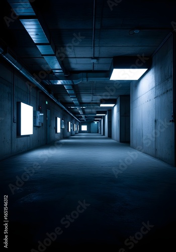 Underground bunker with LED lighting and industrial textures