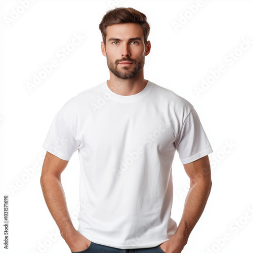 singlet, isolated, photogenic, t-shirt, casual attire, people, guy, person, model, shirt, boy, smiling, man, face, fashion, smile, standing, looking, studio, 1, confident, lifestyle, expression, beauty, body, arm