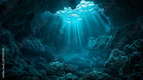 Underwater cave abstraction Dark ocean depths, eerie ambiance