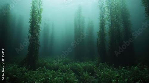 Underwater Kelp Forest with Sunlight Streaming Through