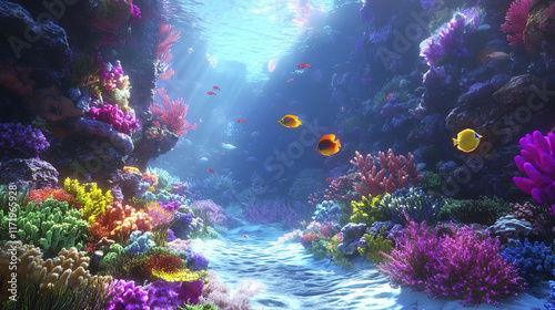underwater paradise with vibrant coral reef and colorful fish swimming