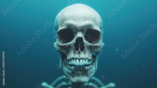Underwater Skeleton in Mysterious Blue Waters