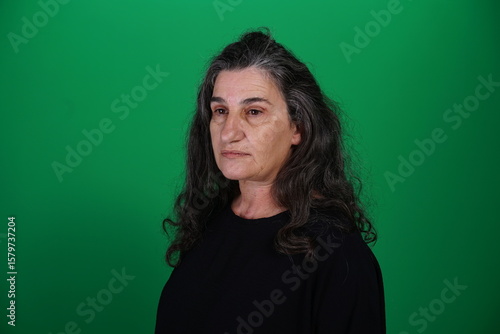 facial expression, happy woman, natural look, studio shot, green background, chroma key, no makeup, natural beauty, body language, head shot