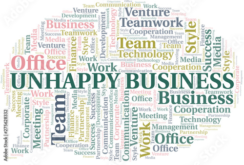 Unhappy Business word cloud. Collage made with text only.