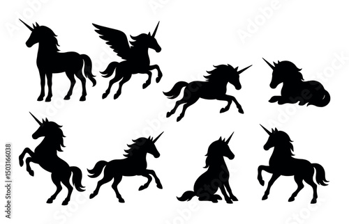 unicorn, silhouette, icon, mystical, magical, creature, fantasy, horse, design, mythical, set, black, graphic, shape, art, royals, elegant, serene, equine, shadow, collection, decorative, pony, mythology, illustration, creativity, emblem, magic, animal, gentle, enchanting, wonder, whimsy, beauty, simple, theme, fairy, surreal, picturesque, charming, graceful, imaginary