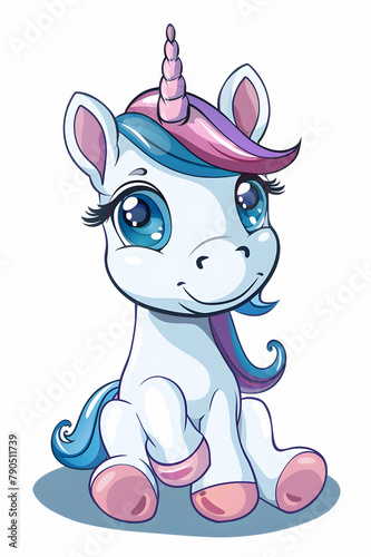 unicorn, closeup, white background, cute, big eye, white, isolated, cartoon, pony, symbol, art, fun, pink, baby, funny