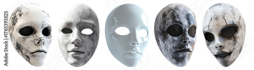 Unique Artistic Masks Collection for Creative and Mysterious Themes, Isolated on Transparent, white background