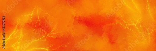Unique painting art with orange sky and lightning texture paint brush for presentation, card background, wall decoration, or t-shirt design