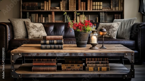 unique, table, wood, illustration, reclaimed, hot drink, distressed, finish, shape, metal, accent, industrial, touch, stack, book, decorative, tray, cosy, eclectic, living, room, furniture, design, style, interior, home, decor, vintage, rustic, modern, craftsmanship