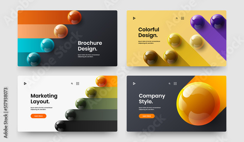 Unique web banner design vector illustration bundle. Bright 3D spheres leaflet template collection.