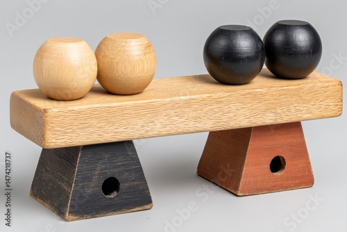 Unique wooden balance game with colorful weights for kids and adults showcasing fine craftsmanship and engaging play