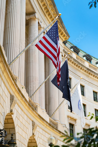 american, flag, us, washington, dc, government, patriotism, building, architecture, column, american flag, national, america, american flag, federal, sky, neoclassic, capitol, independence, symbol, landmark, freedom, democracy, institution, city, urban, blue skies, historic, civic, authority, us, exterior, travel, culture, politic, capital city, no people, vertical, classical, historic building, tour tourism, marble, patriotic, facades, proud