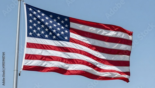 United states flag waving proudly against a clear blue sky on a sunny day