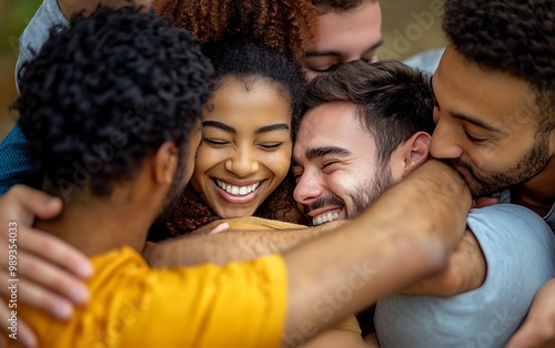 Unity in Diversity: Diverse People Embracing in Warm Group Hug