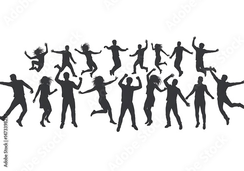jumping, silhouette, people, group, activity, energy, excitement, celebration, joy, fun, happy, movement, action, dynamic, figure, leap, black, white, vector, illustration, design, graphic, collection, jump