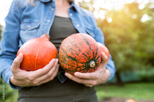 pumpkin, orange, harvest, garden, woman, nature, picking, season, agriculture, food, healthy, harvesting, organic, autumn, ripe, rural, men at work, gardening, green, summer, sunlight, shirt, active, lifestyle, hobby, healthy lifestyle, fall, young, produce, sunny, denim, holding, yard, squash, growing, producer, crop, outside, outdoors, working, person, leisure, beautiful, relaxation, fresh, unrecognizable