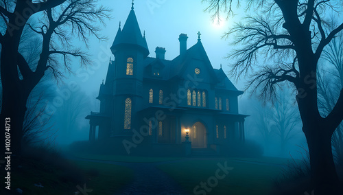haunted, house, full moon, darkness, eerie, gothic, mystery, shadow, skittish, ghostly, architecture, tree, forest, mist, creepy, lantern, victorian, night, path, chilling, silhouette, fog, luxury home, gable, porch, sinister, twilight, atmosphere, legend, horror, supernatural, whisper, flickering, abandoned, secluded, chill, ominous, spectral, aura