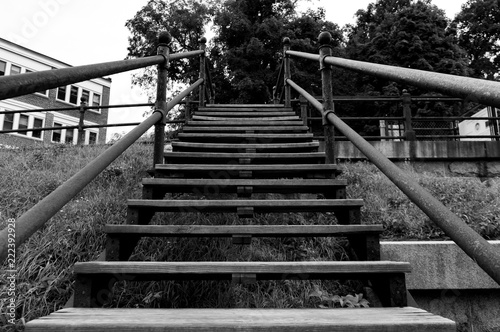 stair, wooden, bridge, staircase, step, stair, wood, nature, staircase, sky, path, up, forest, architecture, old, stone, step, landscape, green, ladder, white, park, railing, grass