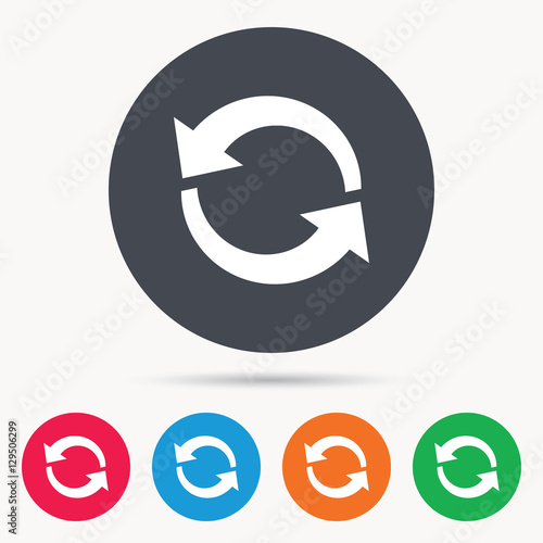 Update icon. Refresh or repeat symbol. Colored circle buttons with flat web icon. Vector