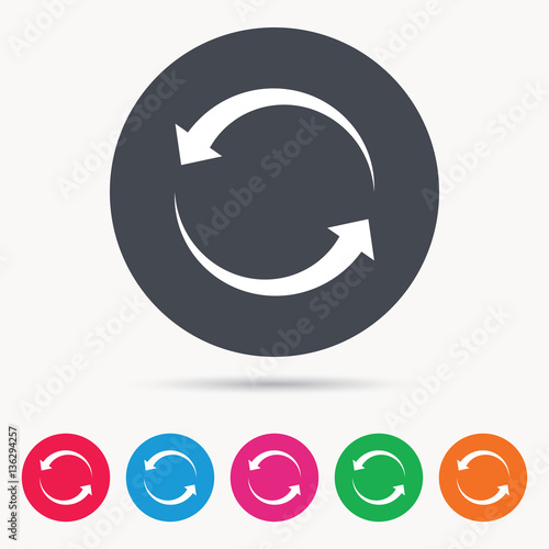 Update icon. Refresh or repeat symbol. Colored circle buttons with flat web icon. Vector
