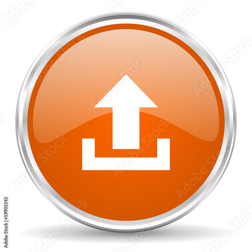 icon, buttons, arrow, up, upload, bottom, direction, go, move, navigation, steering, control, arrow, sell, share, connection, purchase, cyberspace, web, computer, business, symbol, signs, web icon, phone, smartphone, circle, orange, chrome, metallic