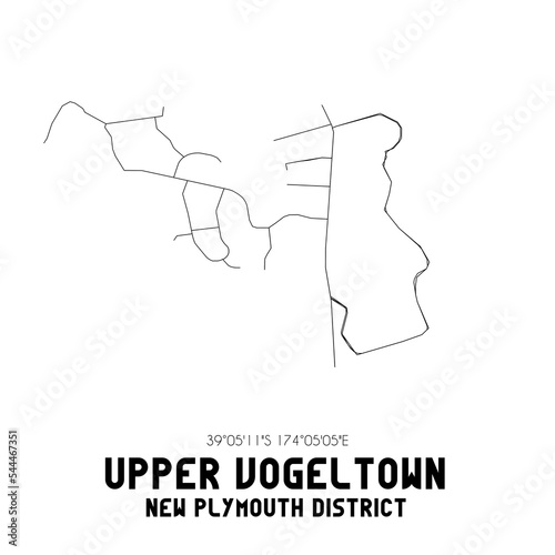 Upper Vogeltown, New Plymouth District, New Zealand. Minimalistic road map with black and white lines