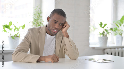 Upset African Man Feeling Worried While Sitting in Office