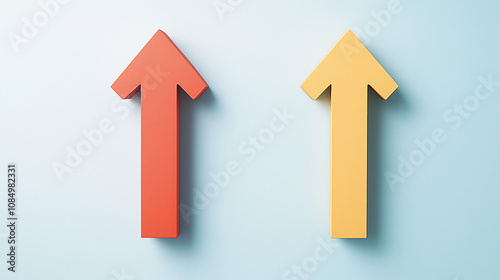 arrow, upward, downward, red, yellow, modern, abstract, graphic, business, finance, illustration, creative, design, shape, colours, symbol, concept, minimalistic, direction, emotion, clarity, growth, decayed, dynamic, visual, strategy, communication, trend, analysis, market, success, challenge, investment, decision, progress, optimism, pessimism, innovation, creativity, no people