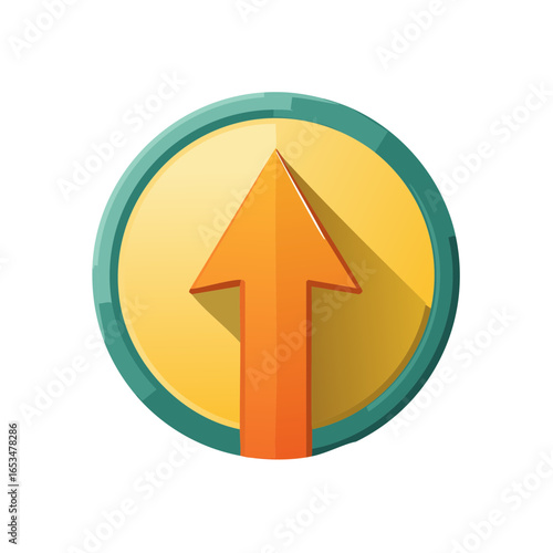 Upward Orange Arrow Icon in a Teal and Yellow Circle