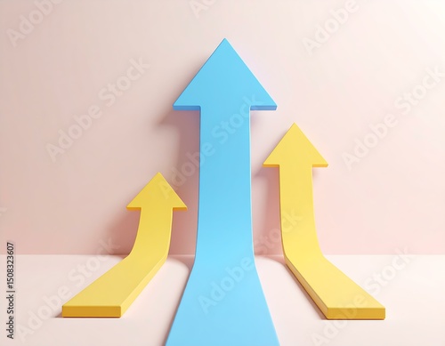 arrow, arrow, upward, growth, success, progress, achievement, goal, aspiration, vision, future, strategy, innovation, business, marketing, finance, technology, development, leadership, motivation, inspiration, opportunity, potential, advancement, improvement, rising, elevation, ascension, trajectory, path, direction, guidance, target, objective, ambition, dedication, persistence, result, outcome, accomplishment, blue, yellow, pink, background, three-dimensional, design, graphic, illustration