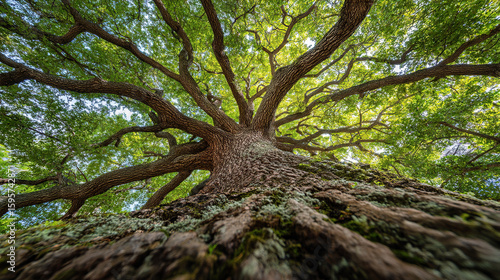 tree, canopy, bark, texture, branch, leaf, green, nature, forest, majestic, tall, perspective, trunk, growth, environment, foliage, sunlight, natural light, outdoors, organic, peaceful, serene, oxygen, life, ecosystem, timberland, park, landscape, botanical, seasonal, summer, spring, earth, root, strength, stability, calmness, shade, background, composition, detail, closeup, flora, wilderness, natural beauty