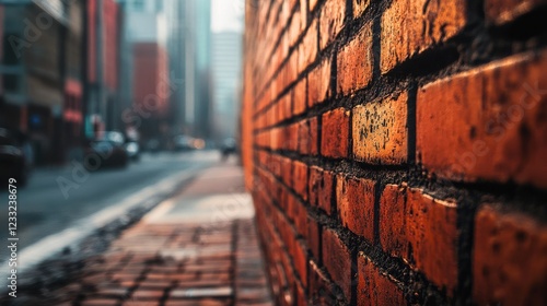 Urban Cityscape with Textured Orange Brick Wall and Blurred Background