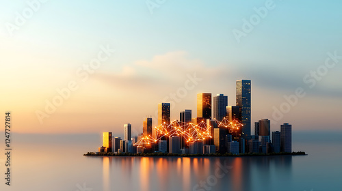 Urban connectivity a sunset view of a futuristic city skyline modern architecture tranquil waters inspirational concept of digital innovation