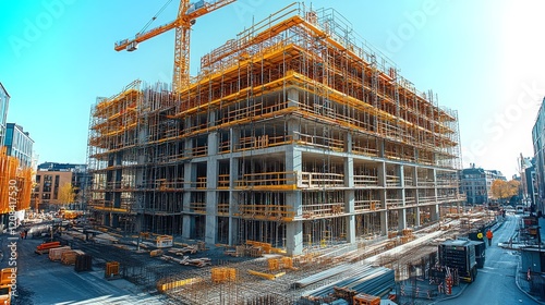 ai, construction, safety, building, engineering, men at work, architecture, urban, scaffolding, site, crane, management, skyline, design, city landscape, city, planning, concrete, project, work, framework, teamwork, tool, development, modern, landscape, equipment, progress, structure, material, renovation, activity, area, infrastructure, structural, labourer, machinery, labor, ongoing, manpower, landscaping, exterior, rising, urbanisation, foundation, builder