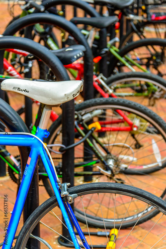 urban, city, bike, rack, transportation, bicycle, parked, crowded, commuter