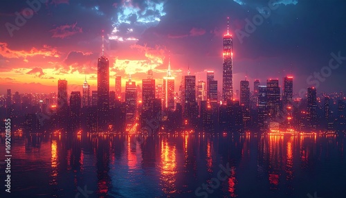 Urban Night Scenery and Fantasy Skies