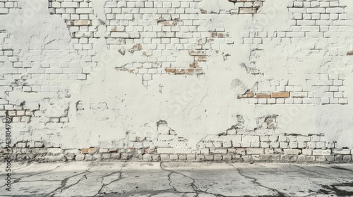 Urban setting with white distressed brick wall and space for text