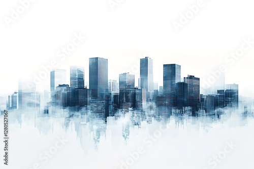 Urban skyline shrouded in mist showcasing modern architecture at dawn